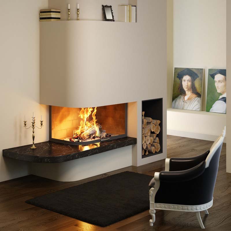 Lateral Curved 900. Tuotteen mitat 1358x886x553 mm. Tulipesän mitat 700x367 mm. Luukun korkeus 460 mm. Paino 320 kg. Lämmitettävä tila n 140 m2. Hormiliitos D200 mm päällä. Hyötysuhde 78%. Palokaasut 212°C. Teho 9,5-13,5 kW. Turvaetäisyys lasista palavaan 800 mm.