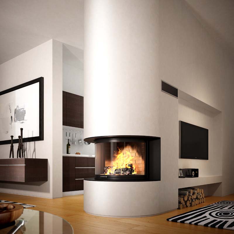 Panoramic Curved 900. Tuotteen mitat 1567x936x723 mm. Tulipesän mitat 700x530 mm. Luukun korkeus 545 mm. Paino 330 kg. Lämmitettävä tila n 140 m2. Hormiliitos D250 mm päällä. Hyötysuhde 75%. Palokaasut 304°C. Teho 9,5-14 kW. Turvaetäisyys lasista palavaan 800 mm.