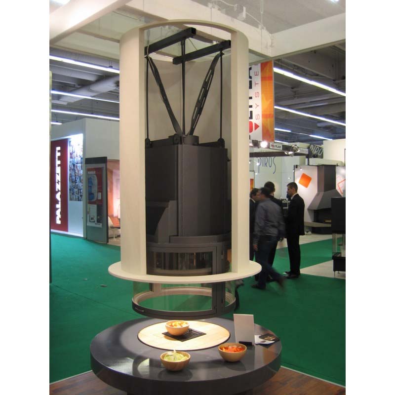 Panoramic Suspendu. Tuotteen mitat 1885x847x847 mm. Tulipesän mitat D750 mm. Luukun korkeus 545 mm. Paino 360 kg. Lämmitettävä tila n 200 m2. Hormiliitos D250 mm päällä. Hyötysuhde 78%. Palokaasut 212°C. Teho 13,5-20 kW. Turvaetäisyys lasista palavaan 800 mm.